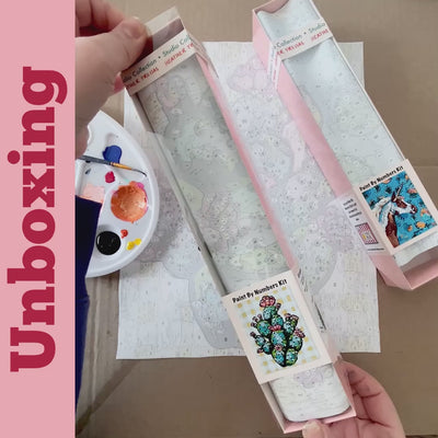 Our Paint by Numbers kits are made in studio with love by the artist herself! Each kit comes with edge to edge printed paint by numbers on genuine canvas paper perfect for easy universal framing when finished ( frame like a print ). It has slight color blocking making finding numbers a breeze.