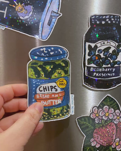 Our die-cut magnets are made in-studio from 20 mil magnet sheets and finished with professional gloss or glitter for lasting enjoyment. Each design is from an original piece of art, ready to bring color and personality to any magnetic surface such as fridges, lockers, bumpers, and more!